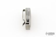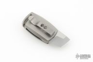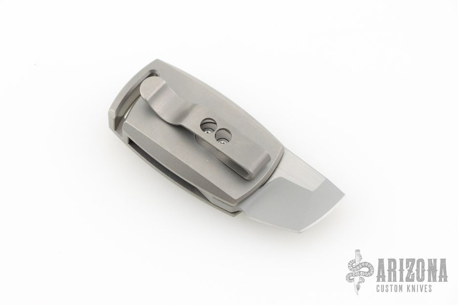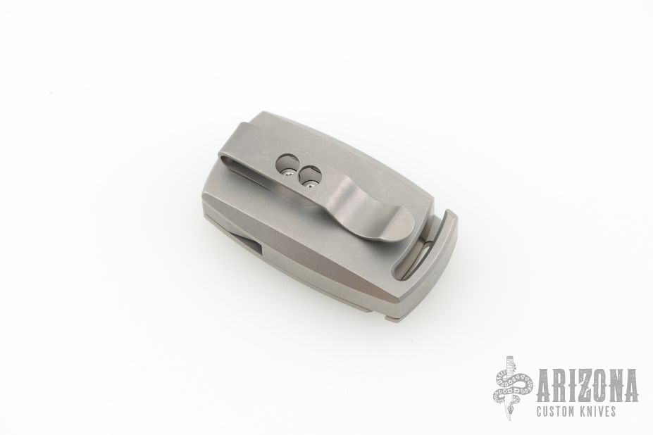 The handle is precision-machined from titanium, offering lightweight strength in a sleek silhouette. It features a removable pocket clip, and for those who prefer clipless carry, a matching filler tab is included. A glow-in-the-dark inlay in the pivot area on the front side adds functional flair—easy to find in low light, hard to ignore in any setting.