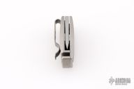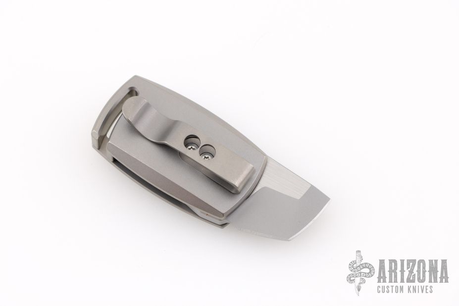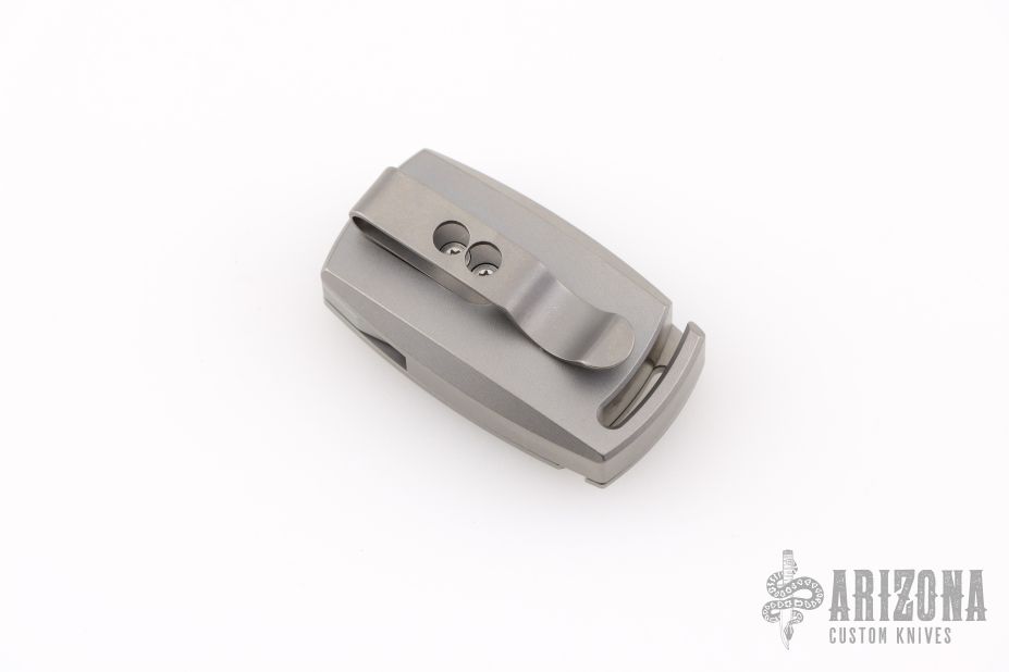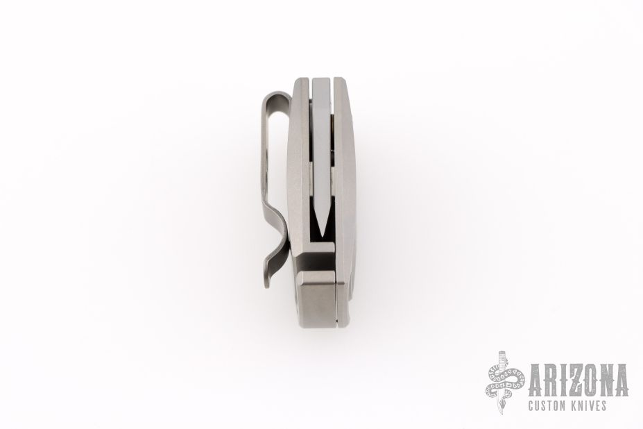 The handle is precision-machined from titanium, offering lightweight strength in a sleek silhouette. It features a removable pocket clip, and for those who prefer clipless carry, a matching filler tab is included. A glow-in-the-dark inlay in the pivot area on the front side adds functional flair—easy to find in low light, hard to ignore in any setting.