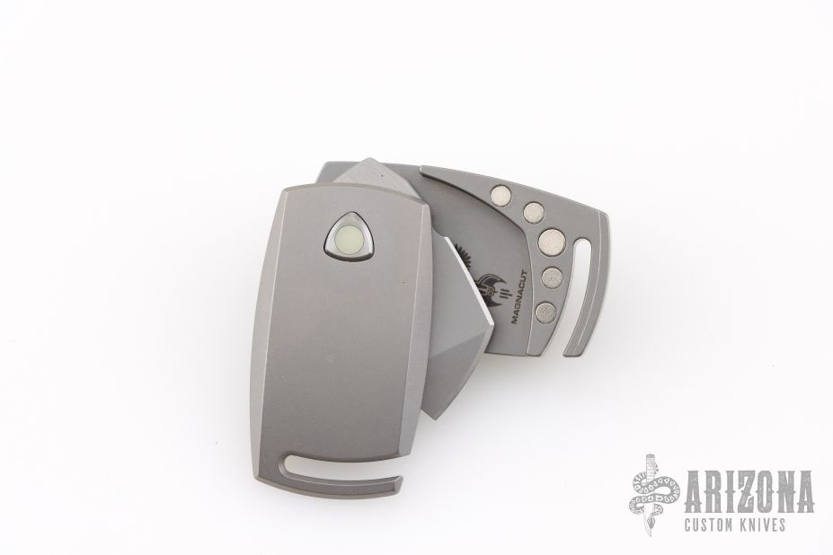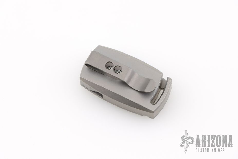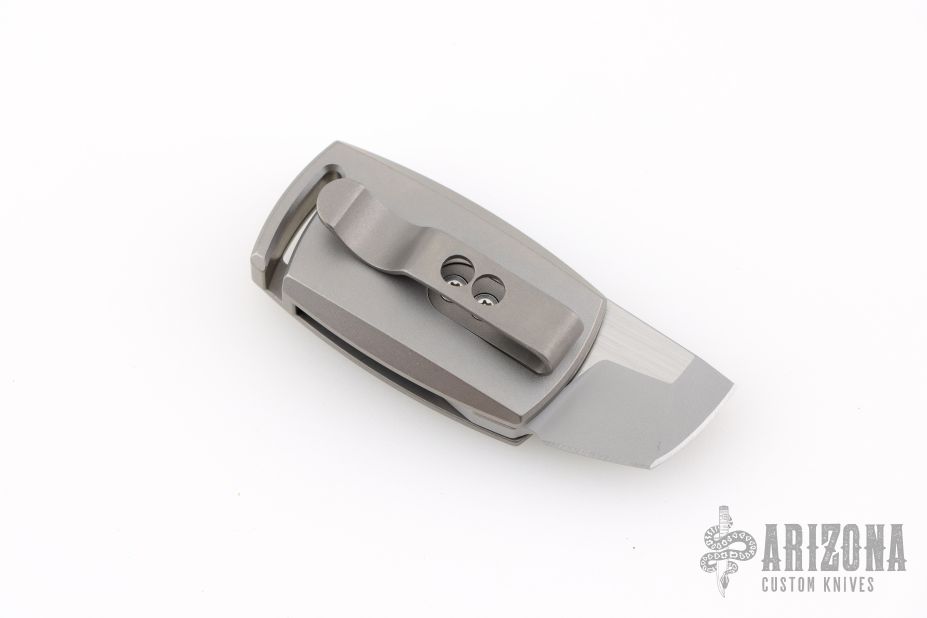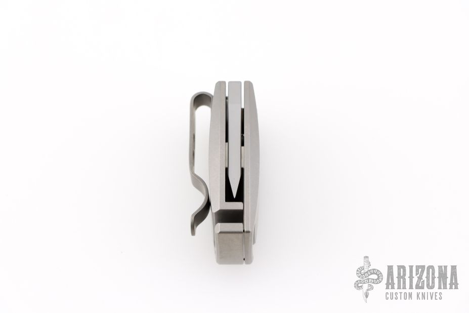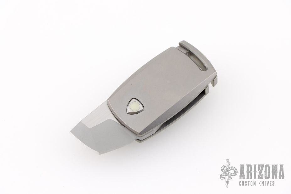 The handle is precision-machined from titanium, offering lightweight strength in a sleek silhouette. It features a removable pocket clip, and for those who prefer clipless carry, a matching filler tab is included. A glow-in-the-dark inlay in the pivot area on the front side adds functional flair—easy to find in low light, hard to ignore in any setting.