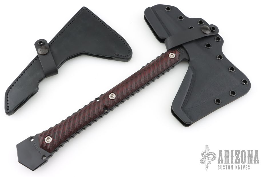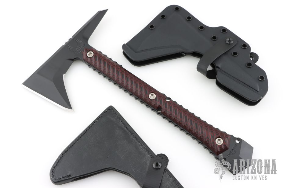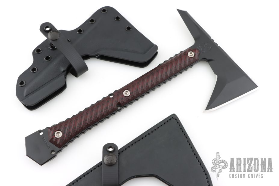 RMJ teamed up with Bawidamann Blades in 2012 to create a lightweight tomahawk that is fast in the hand and different than other tomahawks; thus the Ragnarok was born. Now after several years of making the Ragnarok for Bawidamann Blades, RMJ is now offering a production version. The RMJ Ragnarok is the same tomahawk with angled and textured G10 handles, as well as a Tungsten Gray Cerakote Finish.