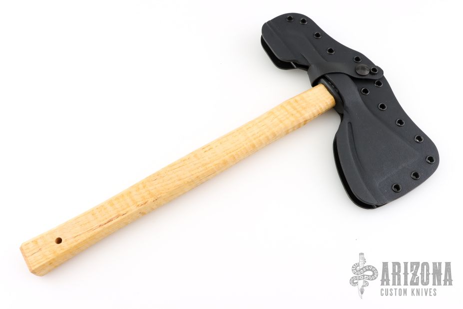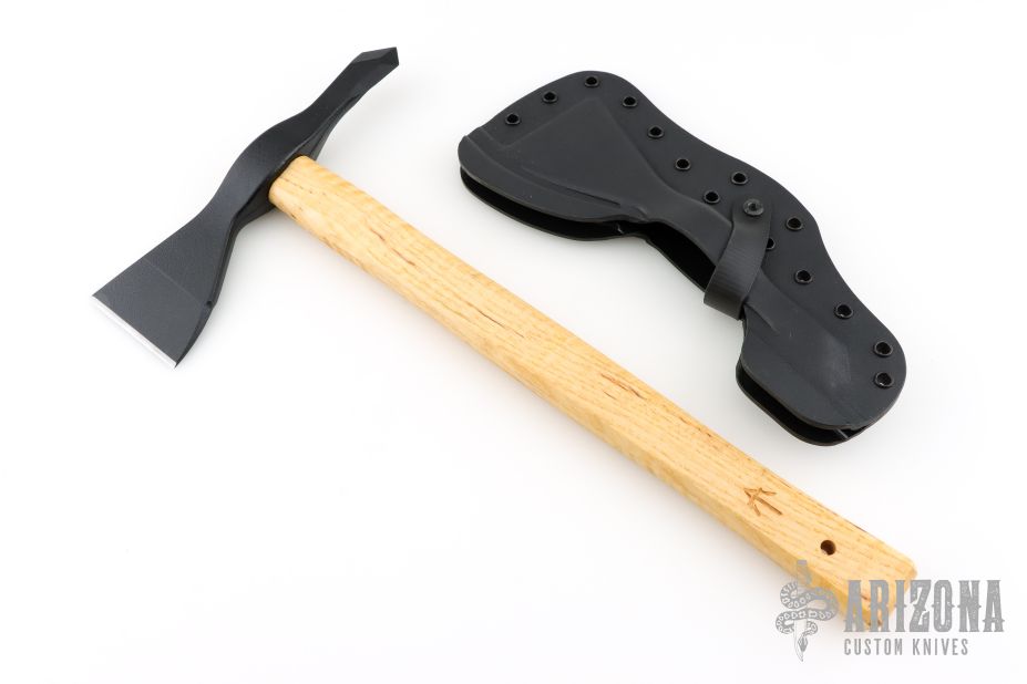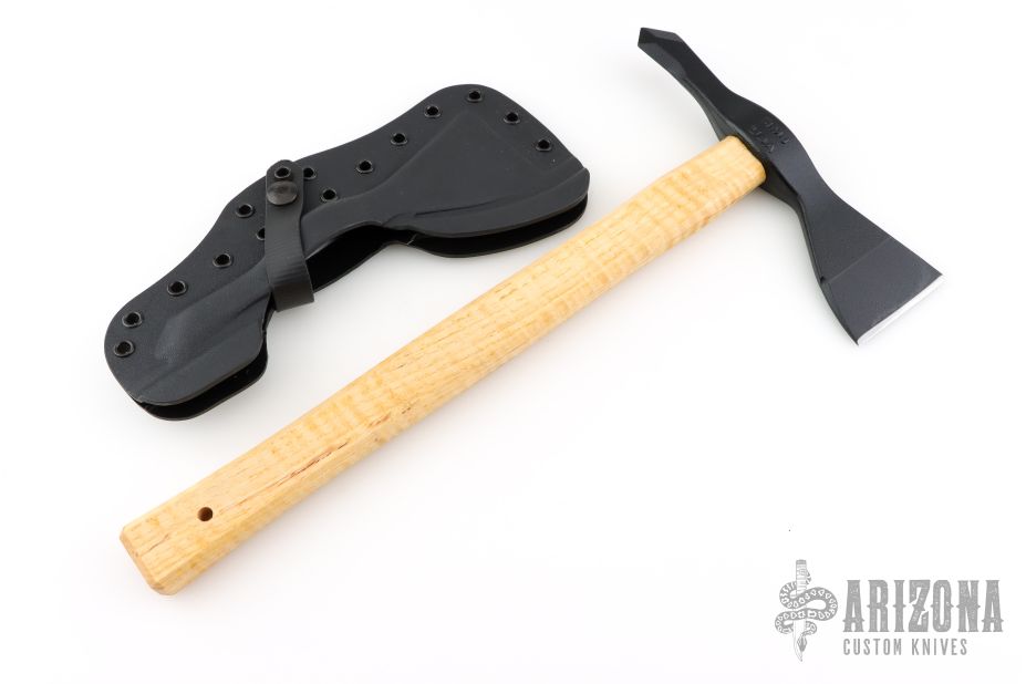 The Model 1 is designed to be small and light enough to never be left at home, but big enough to serve as your lightweight axe/chopping/smashing tool. The Model 1 comes with a molded bottom-eject Kydex scabbard that includes Low-Ride MOC straps for belt carry. Please check out our full line of MOC mounting options for your Model 1, we have a shoulder strap option, MOLLE mounting and others available to purchase.