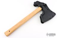 The Model 2 is a robust hammer poll tomahawk with an aggressive 4.125" cutting edge. Combine that with a straight handle makes it a well balanced tool that offers incredible cutting capability. In addition to the sharpened main edge, the Model 2 has a true hammer at the back of the head making it a great companion around camp. The bearded design allows for a high grip, facilitating more accurate fine motor skill work. The Model 2 features a black powdercoat finish for corrosion and wear resistance. Included is a bottom-eject, molded kydex sheath and low-ride M.O.C. straps for belt carry.