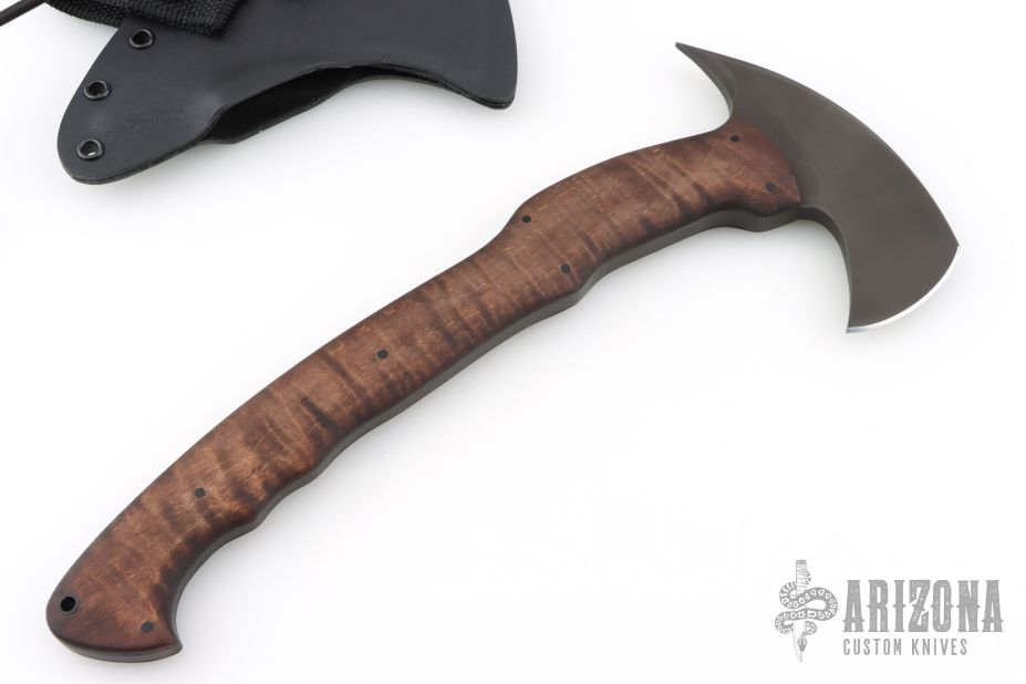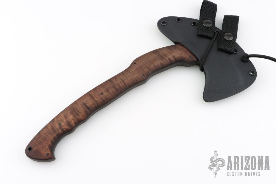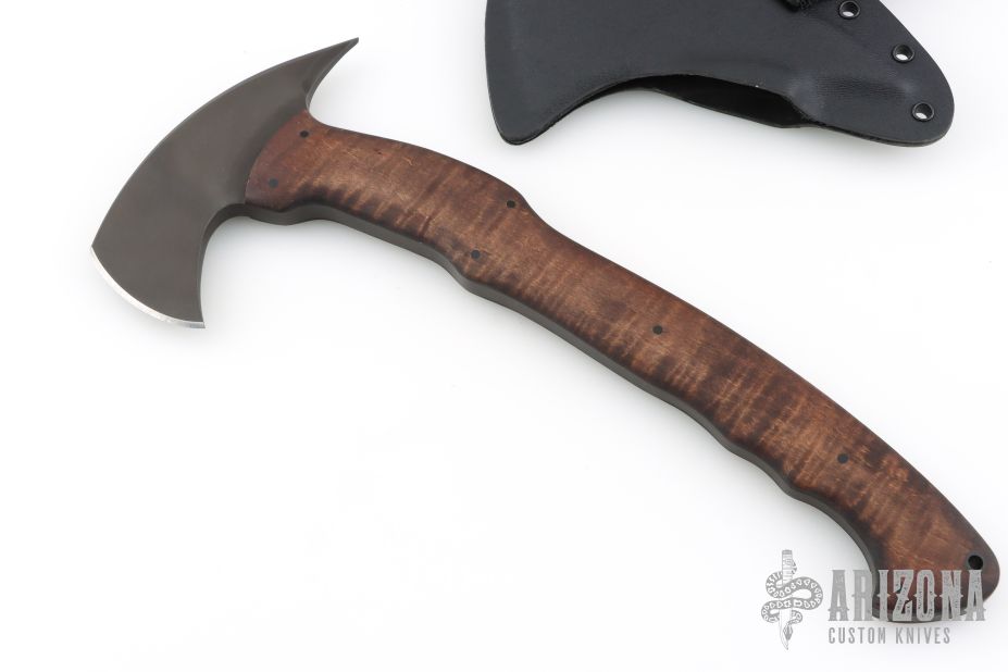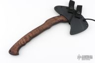 The WK RnD Axe Series is a collaborative design between Master Bladesmith Daniel Winkler and skilled Sayoc Kali martial arts trainer Rafael Kayanan. The full-size model is the most tested and highly developed axe produced by Winkler Knives, and has been proven in combat applications by a Special Operations Force Team. It is a favorite among operators and servicemen who choose their own equipment. The handle design provides a standard grip position, as well as a secondary close quarter grip that was developed to emulate the feel of a handgun grip.