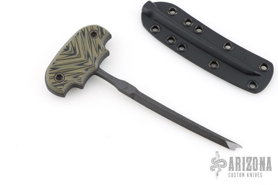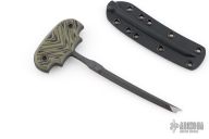 RMJ Tactical is the creation of Ryan M Johnson, a blacksmith who has been continually refining his trade, refreshing his passion and bringing the best-forged tomahawks on the market. He has over 24 years of experience, not just in forging, but also in the history and practical application of the tomahawk in both a civilian and military aspect. Every design that leaves the shop has been meticulously thought out and planned to provide their customers with the best option their money can buy. One great aspect about the shop is that is a family environment with some of the coolest people around. We love carrying makers such as RMJ because you are not only getting a product from them, but you are also receiving an outstanding customer service guarantee. Whether you are purchasing one of their tools for fun, outdoor use or truly tactical applications, you can rest easy knowing you have bought one of the best pieces of kit on the market and will not fail you when you need it most. Modern day blacksmiths such as Ryan continue to shape steel at their will and push the boundaries of what steel can offer in the end result.The 3V Syndicate Akuto push spike is and handful of mean, a nearly 6" EDC ice pick on steroids! "Akuto" is Japanese for "bad man" or "rogue", in the middle ages it generally referred to someone who disturbed the order of society, a person or class rebelling against the existing system.