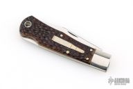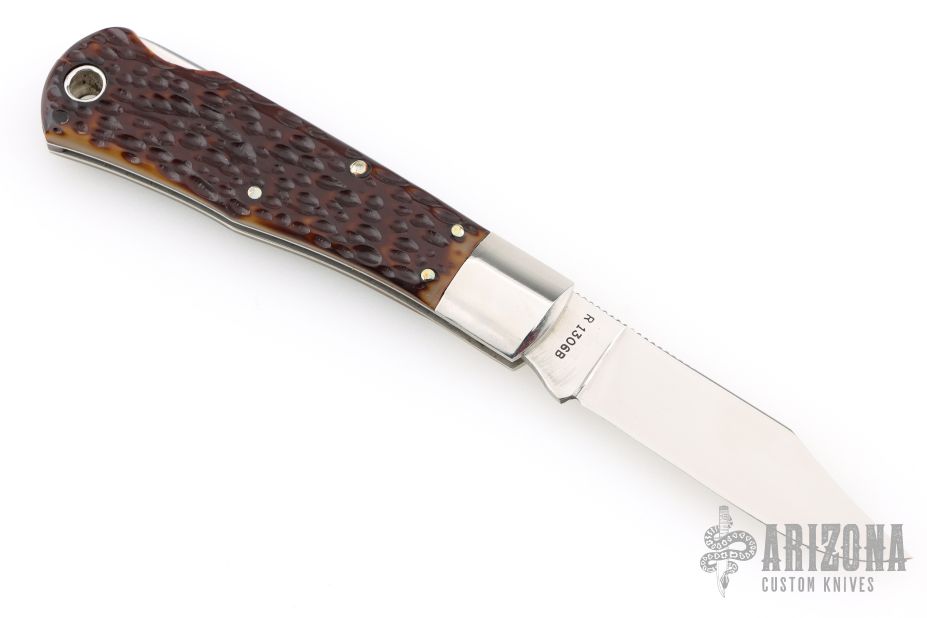 This Remington Bullet from Bowen USA features a mirror finished blade with nail nick and notched thumbrest. The handle has nickel silver bolsters, jigged bone covers, nickel silver liners and stainless steel backspacer. Comes in original box and has a couple light scratches, excellent condition.