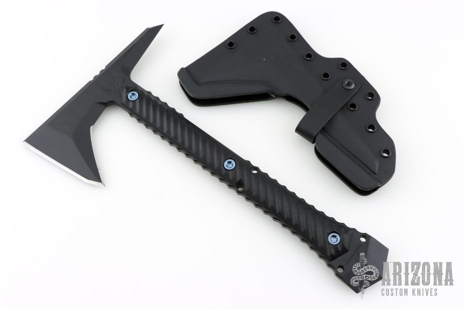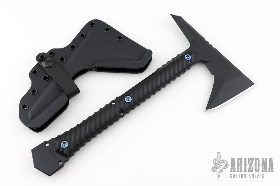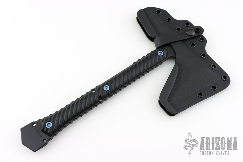 RMJ teamed up with Bawidamann Blades in 2012 to create a lightweight tomahawk that is fast in the hand and different than other tomahawks; thus the Ragnarok was born. Now after several years of making the Ragnarok for Bawidamann Blades, RMJ is now offering a production version. The RMJ Ragnarok is the same tomahawk with angled and textured G10 handles, as well as a Tungsten Gray Cerakote Finish.