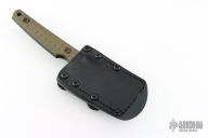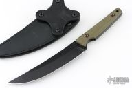 The Musashi features a removable handle, and has a set of green G-10 grips with black G-10 liners for further weight savings.