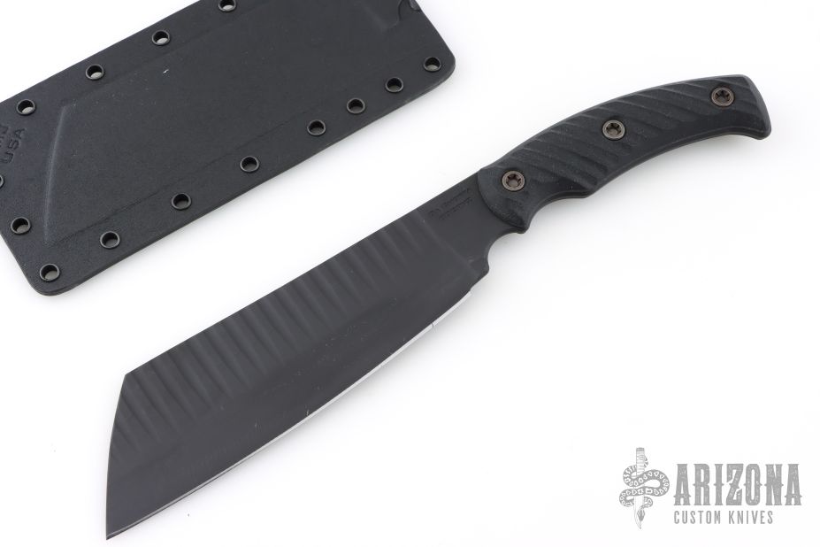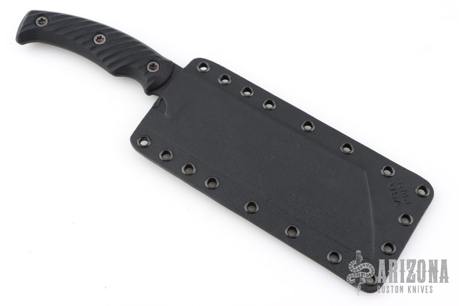 The full-tang construction incorporates G-10, 3D machined handle scales which offer the great grip in wet or dry conditions. The blade has a Graphite Black Cerakote finish for corrosion resistance and durability and an added low visibility look. Included is a molded kydex scabbard with low ride belt attachments.