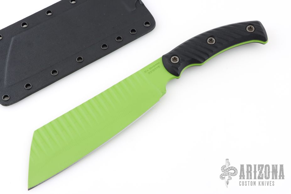 Da Choppa is designed with chopping prowess, and lightweight carry in mind. The RMJ rendition of this classic design makes for a terrific all around blade. At 12" overall, featuring a 7 3/8" blade made from 80CRV2 Carbon Steel and weighing in at a svelte  10.5 ounces, this is a knife for any campsite, hike or outdoor adventure.