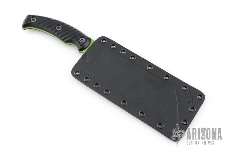 The full-tang construction incorporates G-10, 3D machined handle scales which offer the great grip in wet or dry conditions. The blade has a Graphite Black Cerakote finish for corrosion resistance and durability and an added low visibility look. Included is a molded kydex scabbard with low ride belt attachments.