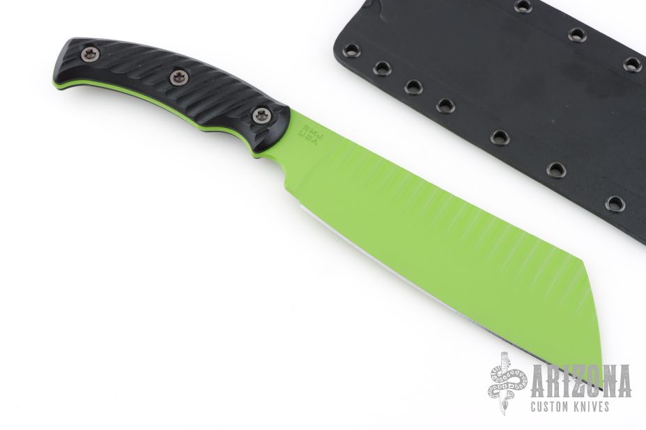 Da Choppa is designed with chopping prowess, and lightweight carry in mind. The RMJ rendition of this classic design makes for a terrific all around blade. At 12" overall, featuring a 7 3/8" blade made from 80CRV2 Carbon Steel and weighing in at a svelte 10.5 ounces, this is a knife for any campsite, hike or outdoor adventure.