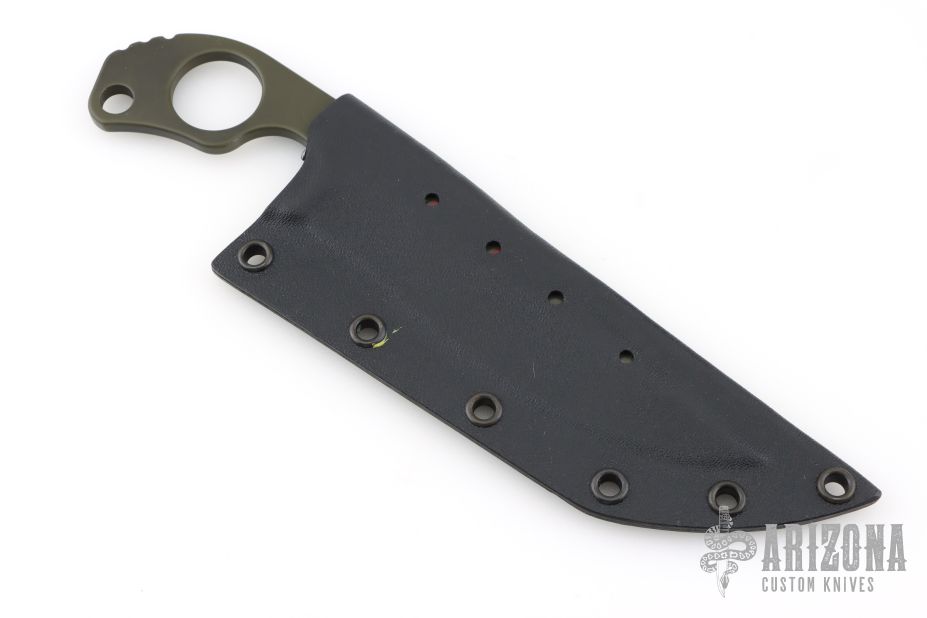 This Bounty Hunter SLCC XL by Mick Strider has a Magnacut Bounty Hunter finished blade with notched thumbrest, .202" blade stock and 1.493" blade depth, full tang construction. Comes with a Kydex sheath. Excellent condition.