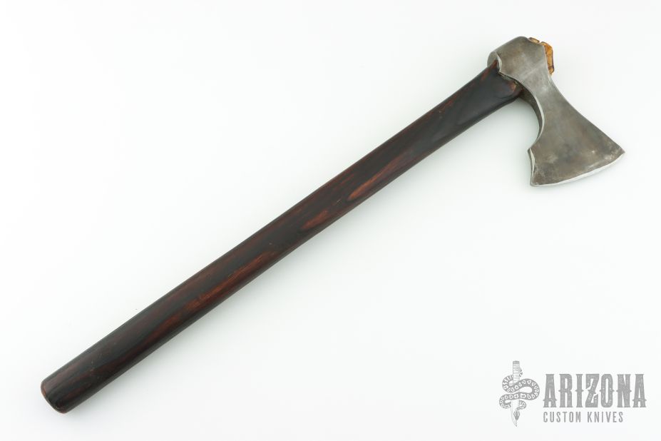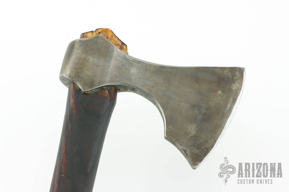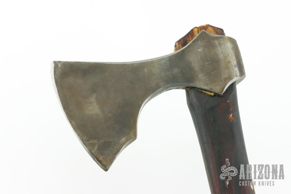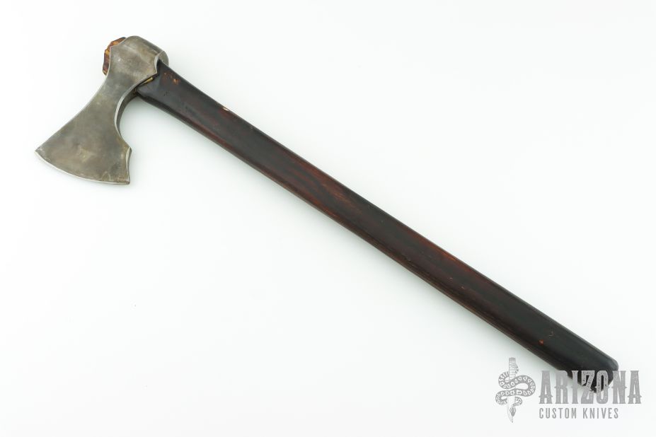 This viking axe features a hand forged head with a 3.5" blade. Has a 19" burnt hickory shaft. Has some scuffs and light oxidation, otherwise excellent condition.