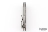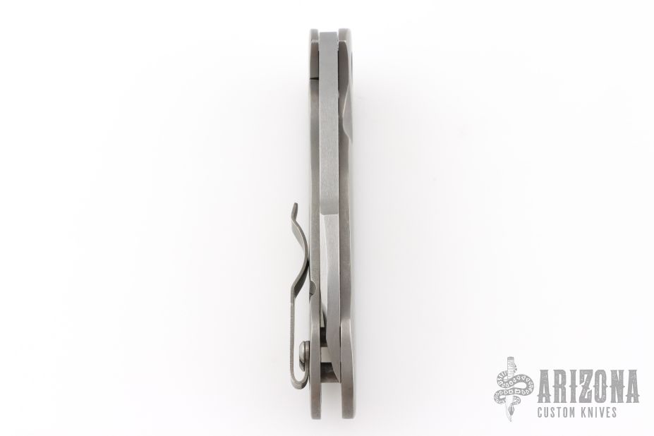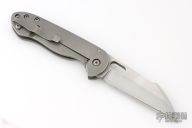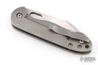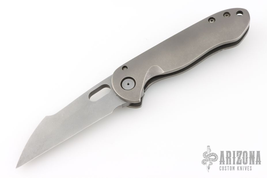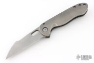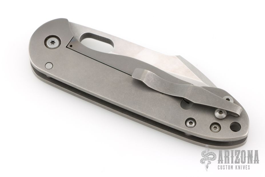 This Tac4 Framelock Folder by Jeremy Horton features a chisel ground tumble finish blade with a thumbhole. The handle has a tumble finished titanium frame with a matching tip up titanium clip. Nice lockup, detent and blade seating. Excellent condition. Comes with a zippered case.