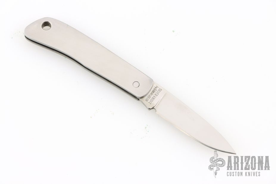 This Silver Knight by Gerber features a mirror finished drop point blade with nail nick. The handle has stainless steel covers, and stainless steel backspacer. Comes in original box. Excellent condition.