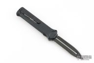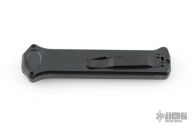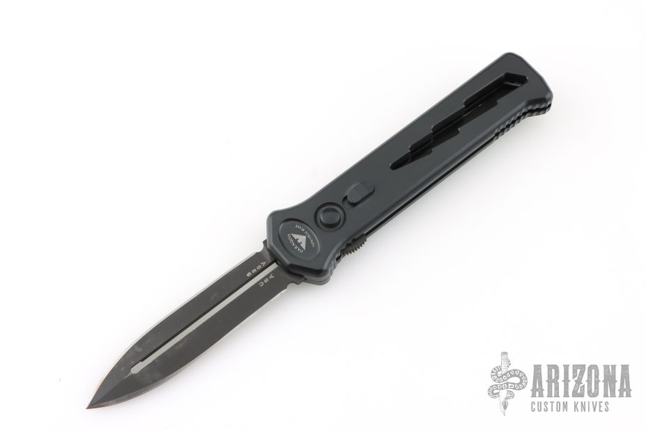 The blade is black finished and double edged. The handle is milled aluminum with a black stainless steel pocket clip, tip down carry. The push button fires the blade and when open, allows you to retract the blade. Sliding safety. Has some light scuffs and scratches, otherwise excellent condition.