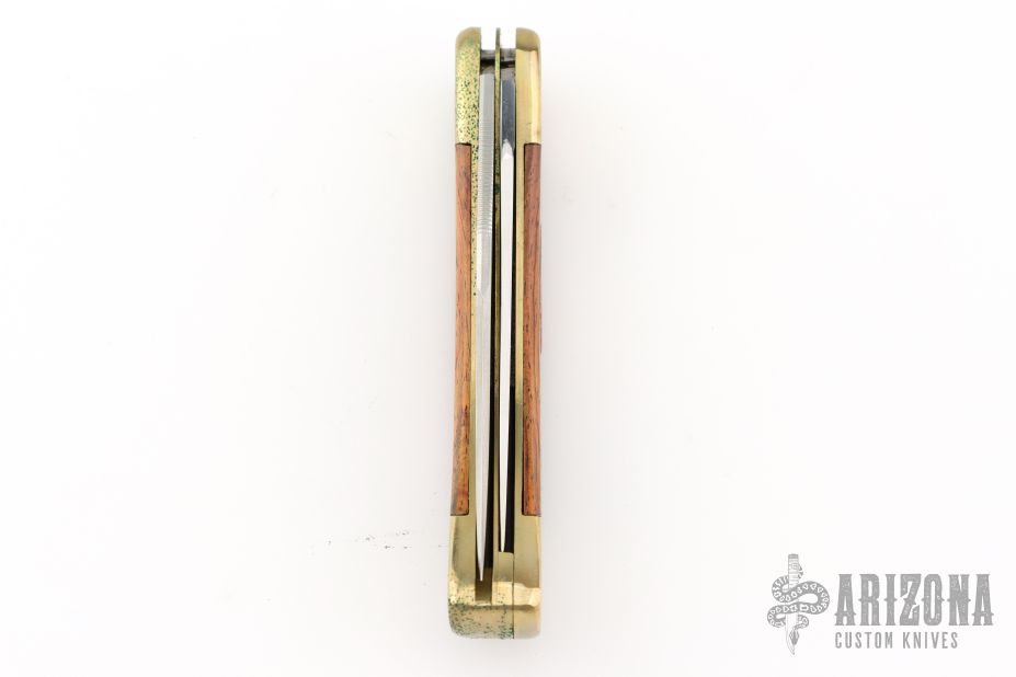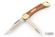 This Puma Game Warden lockback has a brass frame with wood scales. The blades are satin finished with nail nicks. Has some patina, otherwise excellent condition. Comes with original box and papers. #41272