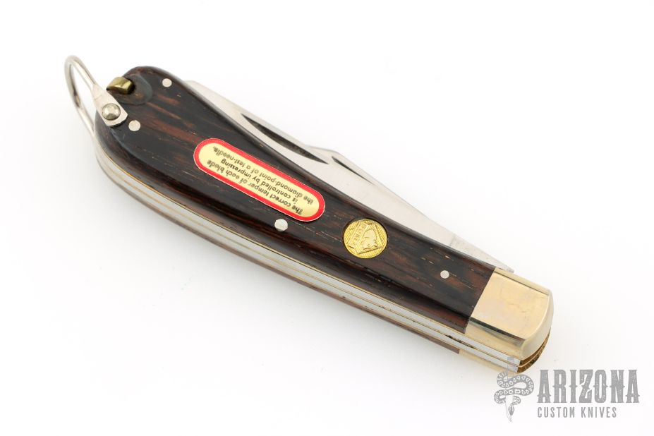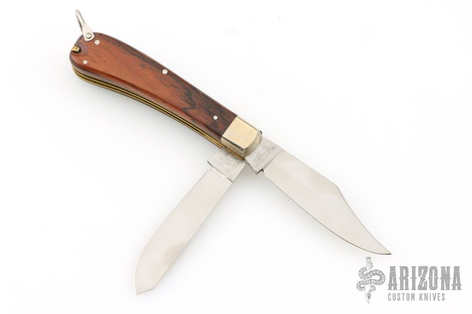 This 666 Puma Gelder from Puma Knives features a satin finished blades with nail nicks. The handle is comprised of nickel silver bolsters and wood covers over brass liners and steel backsprings. Comes with original box and papers. Excellent condition.