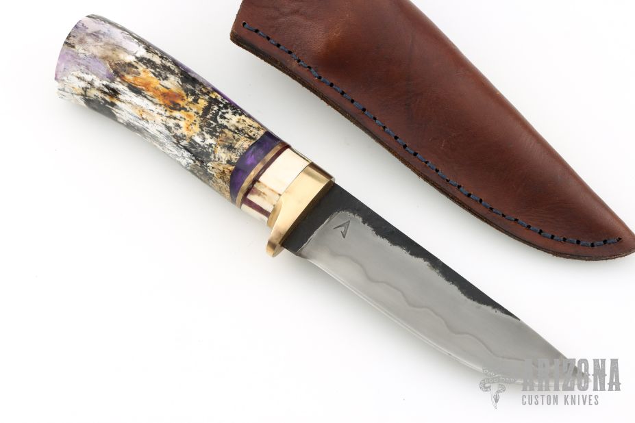 "I start making knives in the middle of 2017 just for fun. After I lost my job at the end 2017 I started to focus on making knives full time. I was learning from other makers and blacksmiths practicing and testing many types of steels. I primary use W2, O1, and sup9a (5160), secondary D2 (for corrosion resistance) and M2 for highly wear resistance. I chose W2, O1, and sup9a primary because its very easy to get very fine grain in the steel. That means it is very easy to sharpen but long lasting edge retention and upgraded toughness level. Those are the characteristics loved so much by chefs and hunters that need clean cutting knives. For handle material I like natural exotic wood and usually horn, also fossil ivory with non ferrous metal like brass, copper and some bronze."