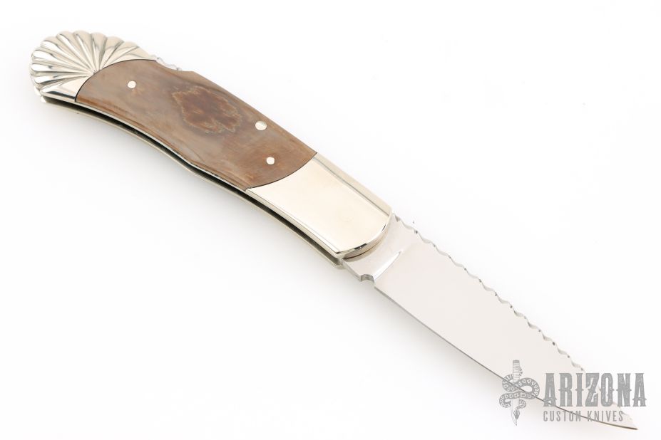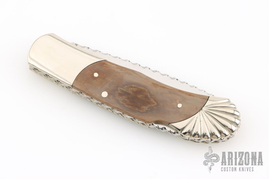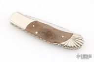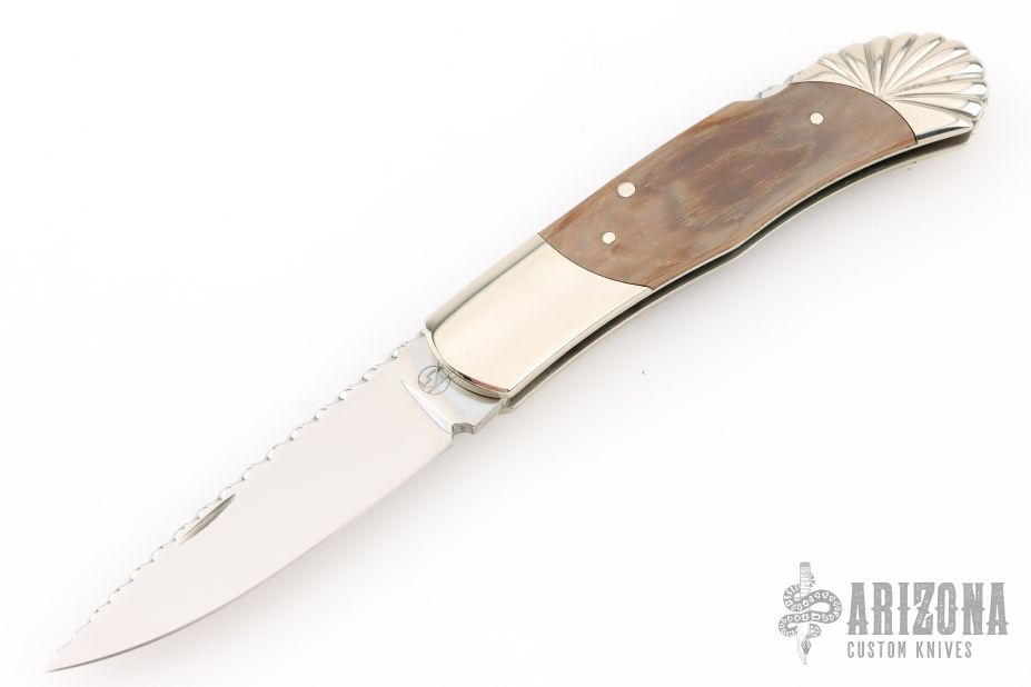 "I've been building knives full time since 1981. I started out making my first knife on the kitchen table with a vise and some files in 1978 at the age of 15. Ever since then it's been a passion and a journey to build a better knife than the last. I primarily make pocket knives with a lockback or front lock mechanism. I have made many other types of knives and am always willing to try something new. I'm most widely known for carving seashell patterns in the bolsters and handle material called scalloping. This type of carving has become a trademark of my work and makes my knives easily recognizable to collectors who have heard of me. I won 11 Blade show awards in 7 consecutive years from 2002 to 2008 including 2 best folder awards, one best folder of the year, 3 best handle designs. I ended competing at the Blade show in 2008 with wining best fixed blade which won best of show. I have also won best folder at the Plaza Invitational and the Chicago show."