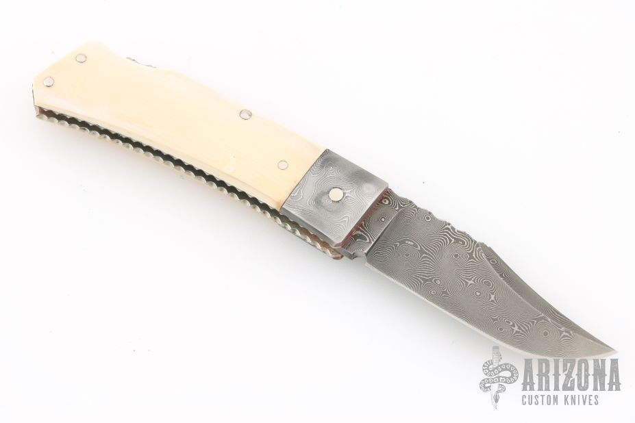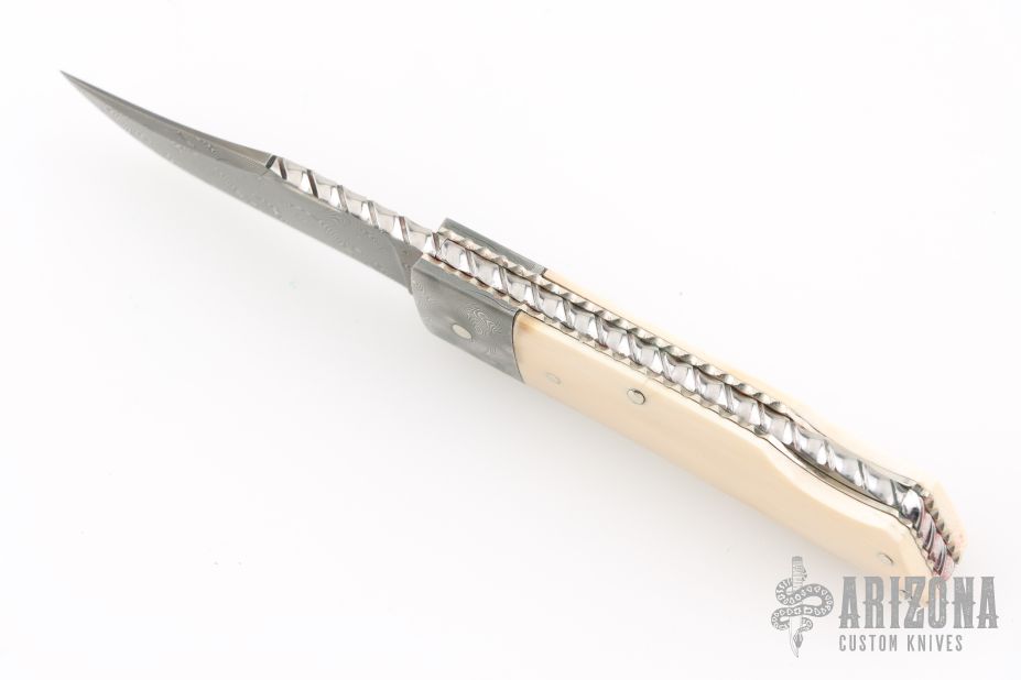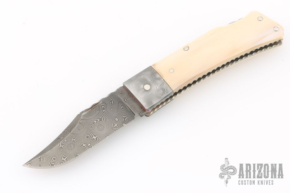 "I've been building knives full time since 1981. I started out making my first knife on the kitchen table with a vise and some files in 1978 at the age of 15. Ever since then it's been a passion and a journey to build a better knife than the last. I primarily make pocket knives with a lockback or front lock mechanism. I have made many other types of knives and am always willing to try something new. I'm most widely known for carving seashell patterns in the bolsters and handle material called scalloping. This type of carving has become a trademark of my work and makes my knives easily recognizable to collectors who have heard of me. I won 11 Blade show awards in 7 consecutive years from 2002 to 2008 including 2 best folder awards, one best folder of the year, 3 best handle designs. I ended competing at the Blade show in 2008 with wining best fixed blade which won best of show. I have also won best folder at the Plaza Invitational and the Chicago show."