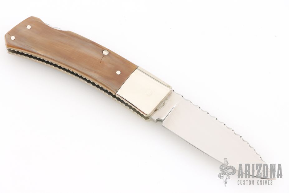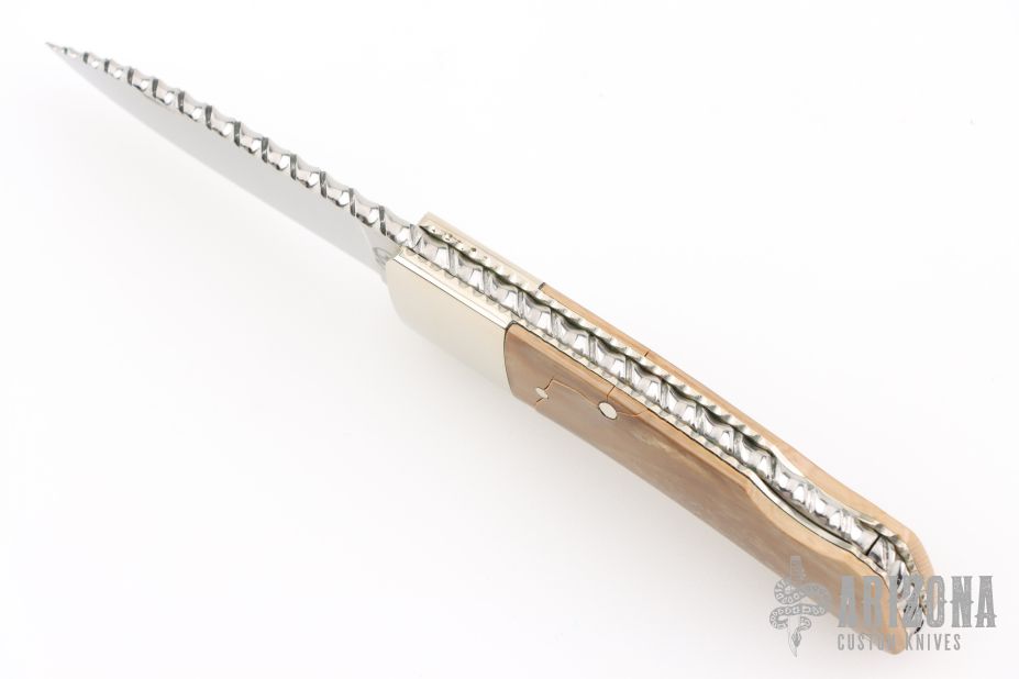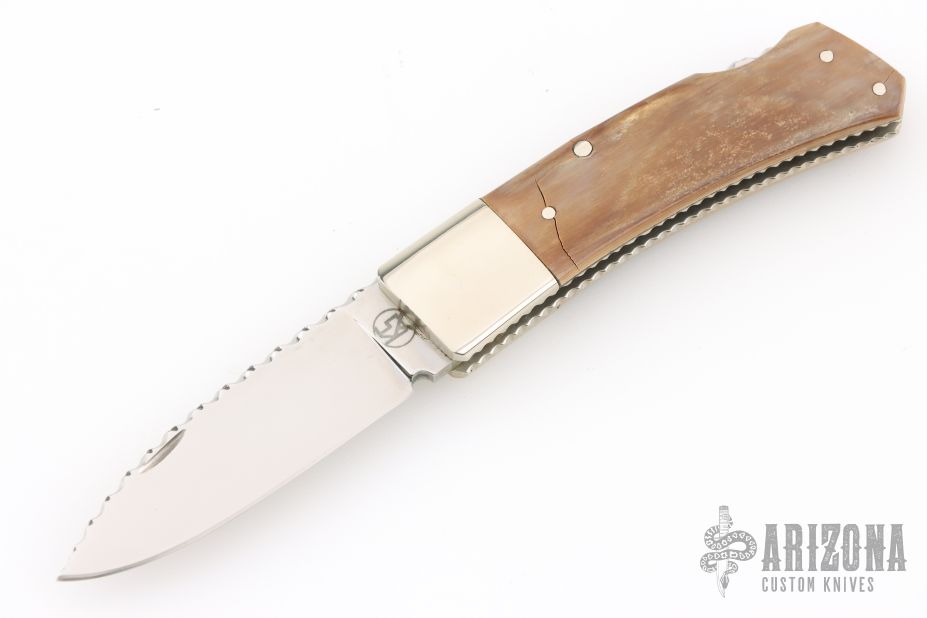 "I've been building knives full time since 1981. I started out making my first knife on the kitchen table with a vise and some files in 1978 at the age of 15. Ever since then it's been a passion and a journey to build a better knife than the last. I primarily make pocket knives with a lockback or front lock mechanism. I have made many other types of knives and am always willing to try something new. I'm most widely known for carving seashell patterns in the bolsters and handle material called scalloping. This type of carving has become a trademark of my work and makes my knives easily recognizable to collectors who have heard of me. I won 11 Blade show awards in 7 consecutive years from 2002 to 2008 including 2 best folder awards, one best folder of the year, 3 best handle designs. I ended competing at the Blade show in 2008 with wining best fixed blade which won best of show. I have also won best folder at the Plaza Invitational and the Chicago show."
