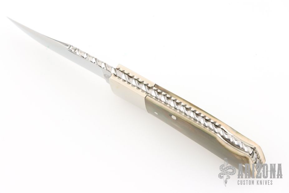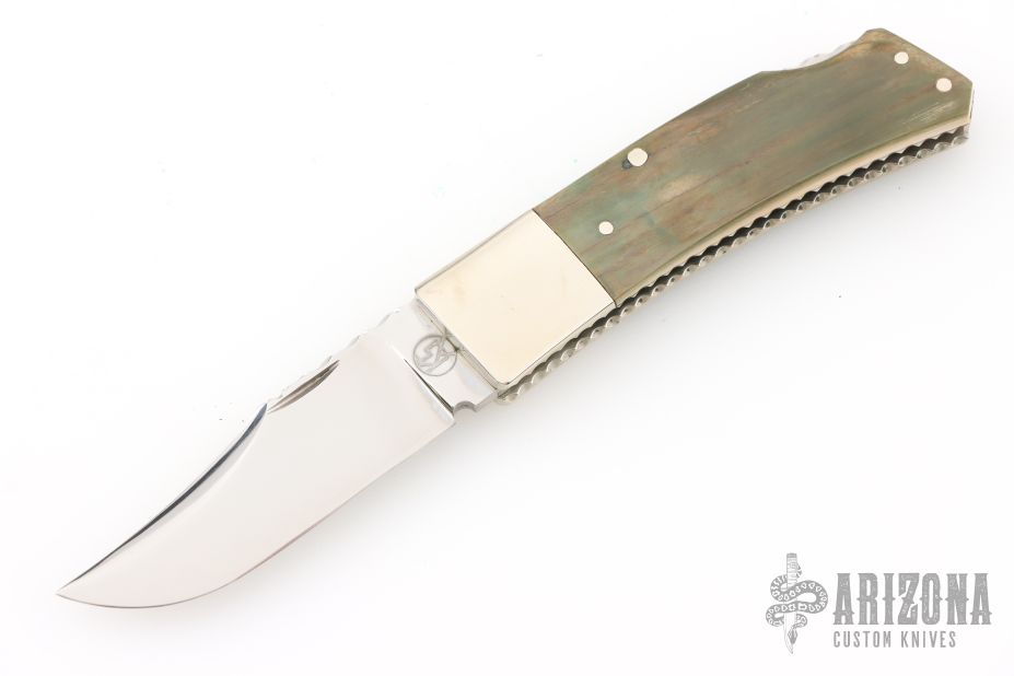 "I've been building knives full time since 1981. I started out making my first knife on the kitchen table with a vise and some files in 1978 at the age of 15. Ever since then it's been a passion and a journey to build a better knife than the last. I primarily make pocket knives with a lockback or front lock mechanism. I have made many other types of knives and am always willing to try something new. I'm most widely known for carving seashell patterns in the bolsters and handle material called scalloping. This type of carving has become a trademark of my work and makes my knives easily recognizable to collectors who have heard of me. I won 11 Blade show awards in 7 consecutive years from 2002 to 2008 including 2 best folder awards, one best folder of the year, 3 best handle designs. I ended competing at the Blade show in 2008 with wining best fixed blade which won best of show. I have also won best folder at the Plaza Invitational and the Chicago show."