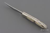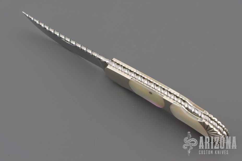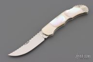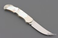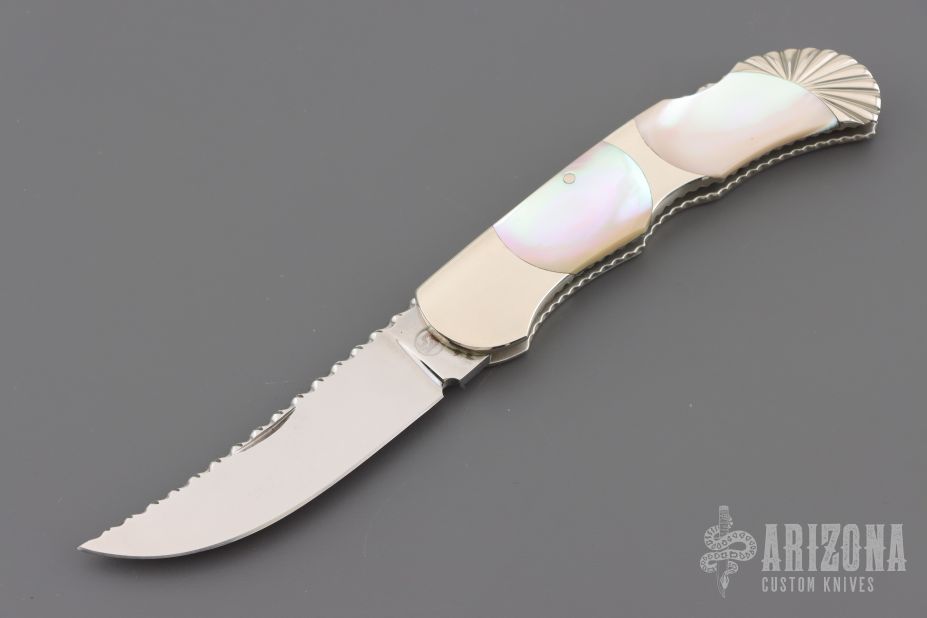 "I've been building knives full time since 1981. I started out making my first knife on the kitchen table with a vise and some files in 1978 at the age of 15. Ever since then it's been a passion and a journey to build a better knife than the last. I primarily make pocket knives with a lockback or front lock mechanism. I have made many other types of knives and am always willing to try something new. I'm most widely known for carving seashell patterns in the bolsters and handle material called scalloping. This type of carving has become a trademark of my work and makes my knives easily recognizable to collectors who have heard of me. I won 11 Blade show awards in 7 consecutive years from 2002 to 2008 including 2 best folder awards, one best folder of the year, 3 best handle designs. I ended competing at the Blade show in 2008 with wining best fixed blade which won best of show. I have also won best folder at the Plaza Invitational and the Chicago show."