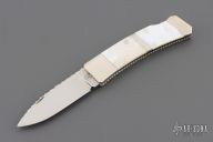 "I've been building knives full time since 1981. I started out making my first knife on the kitchen table with a vise and some files in 1978 at the age of 15. Ever since then it's been a passion and a journey to build a better knife than the last. I primarily make pocket knives with a lockback or front lock mechanism. I have made many other types of knives and am always willing to try something new. I'm most widely known for carving seashell patterns in the bolsters and handle material called scalloping. This type of carving has become a trademark of my work and makes my knives easily recognizable to collectors who have heard of me. I won 11 Blade show awards in 7 consecutive years from 2002 to 2008 including 2 best folder awards, one best folder of the year, 3 best handle designs. I ended competing at the Blade show in 2008 with wining best fixed blade which won best of show. I have also won best folder at the Plaza Invitational and the Chicago show."