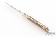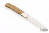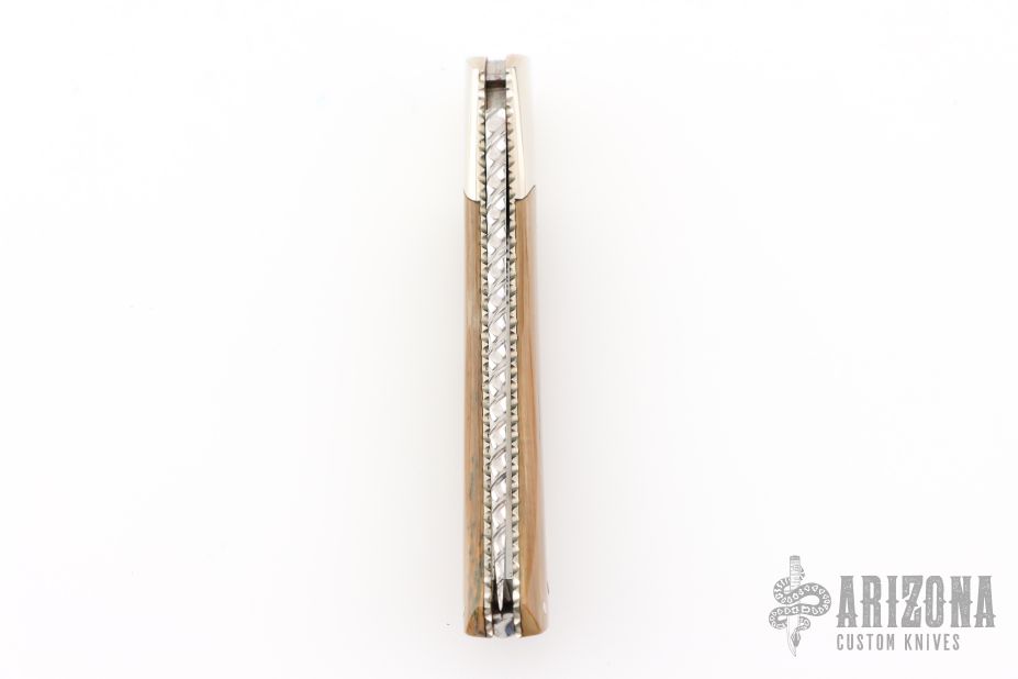 "I've been building knives full time since 1981. I started out making my first knife on the kitchen table with a vise and some files in 1978 at the age of 15. Ever since then it's been a passion and a journey to build a better knife than the last. I primarily make pocket knives with a lockback or front lock mechanism. I have made many other types of knives and am always willing to try something new. I'm most widely known for carving seashell patterns in the bolsters and handle material called scalloping. This type of carving has become a trademark of my work and makes my knives easily recognizable to collectors who have heard of me. I won 11 Blade show awards in 7 consecutive years from 2002 to 2008 including 2 best folder awards, one best folder of the year, 3 best handle designs. I ended competing at the Blade show in 2008 with wining best fixed blade which won best of show. I have also won best folder at the Plaza Invitational and the Chicago show."