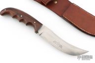 This Trapper by Joseph Rodgers & Sons was made for Abercrombie & Fitch Co, it features a hand forged and hand ground upswept blade with sharpened top edge and notched thumbrest, .165" blade stock and 1.095" blade depth, full tang construction. The handle has wood scales. Comes with a brown leather sheath. Has some light scratches and some oxidation spots on the tang, otherwise excellent condition for its age.