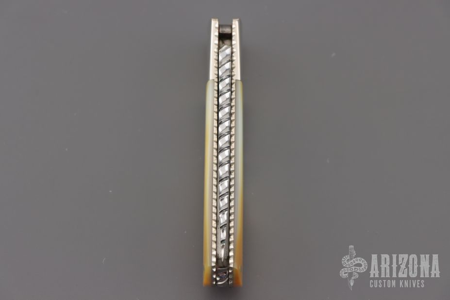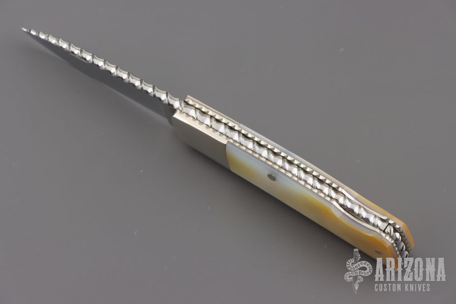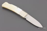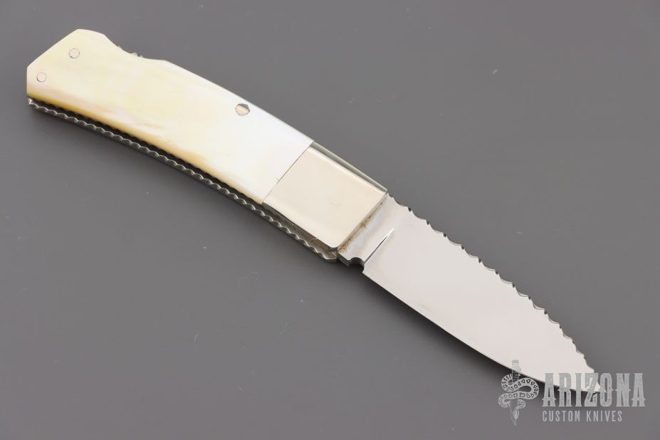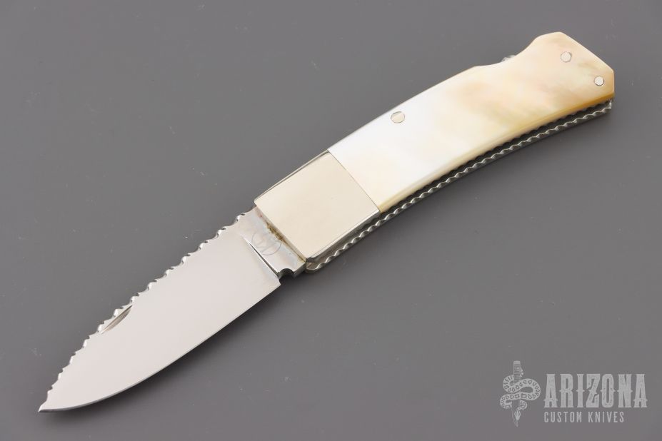 "I've been building knives full time since 1981. I started out making my first knife on the kitchen table with a vise and some files in 1978 at the age of 15. Ever since then it's been a passion and a journey to build a better knife than the last. I primarily make pocket knives with a lockback or front lock mechanism. I have made many other types of knives and am always willing to try something new. I'm most widely known for carving seashell patterns in the bolsters and handle material called scalloping. This type of carving has become a trademark of my work and makes my knives easily recognizable to collectors who have heard of me. I won 11 Blade show awards in 7 consecutive years from 2002 to 2008 including 2 best folder awards, one best folder of the year, 3 best handle designs. I ended competing at the Blade show in 2008 with wining best fixed blade which won best of show. I have also won best folder at the Plaza Invitational and the Chicago show."