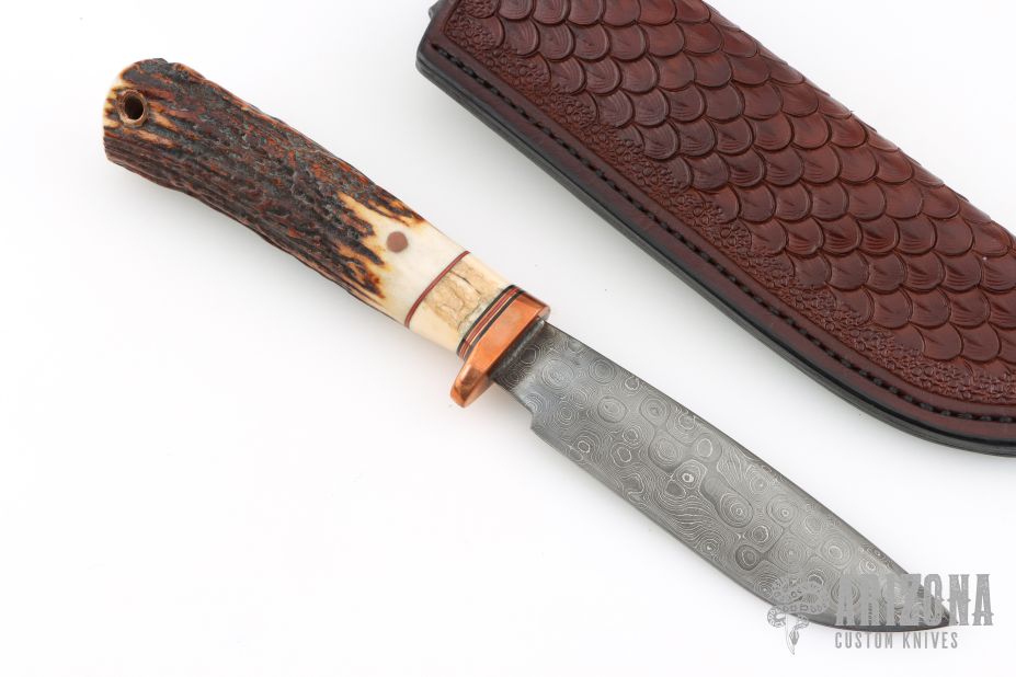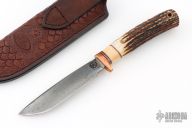 Premium Sambar Stag & Fossil Walrus Damascus Drop Point