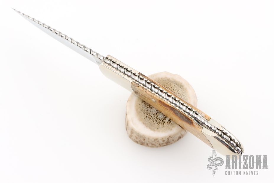 "I've been building knives full time since 1981. I started out making my first knife on the kitchen table with a vise and some files in 1978 at the age of 15. Ever since then it's been a passion and a journey to build a better knife than the last. I primarily make pocket knives with a lockback or front lock mechanism. I have made many other types of knives and am always willing to try something new. I'm most widely known for carving seashell patterns in the bolsters and handle material called scalloping. This type of carving has become a trademark of my work and makes my knives easily recognizable to collectors who have heard of me. I won 11 Blade show awards in 7 consecutive years from 2002 to 2008 including 2 best folder awards, one best folder of the year, 3 best handle designs. I ended competing at the Blade show in 2008 with wining best fixed blade which won best of show. I have also won best folder at the Plaza Invitational and the Chicago show."