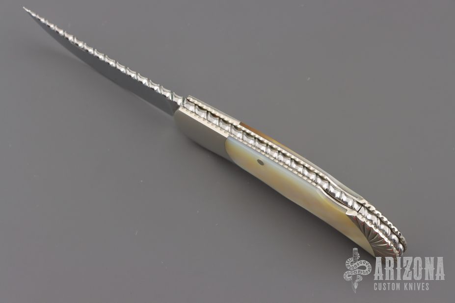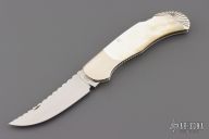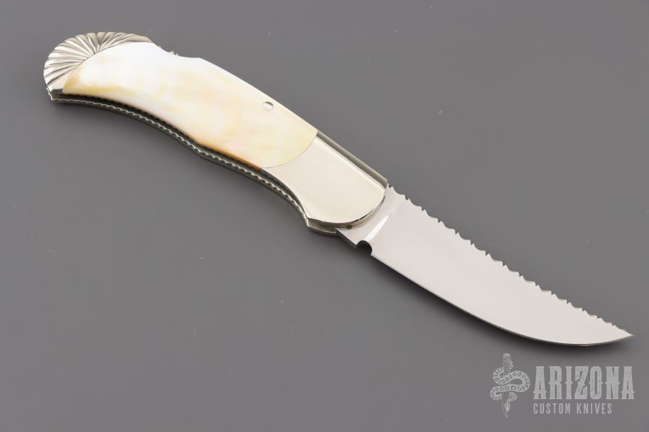 "I've been building knives full time since 1981. I started out making my first knife on the kitchen table with a vise and some files in 1978 at the age of 15. Ever since then it's been a passion and a journey to build a better knife than the last. I primarily make pocket knives with a lockback or front lock mechanism. I have made many other types of knives and am always willing to try something new. I'm most widely known for carving seashell patterns in the bolsters and handle material called scalloping. This type of carving has become a trademark of my work and makes my knives easily recognizable to collectors who have heard of me. I won 11 Blade show awards in 7 consecutive years from 2002 to 2008 including 2 best folder awards, one best folder of the year, 3 best handle designs. I ended competing at the Blade show in 2008 with wining best fixed blade which won best of show. I have also won best folder at the Plaza Invitational and the Chicago show."