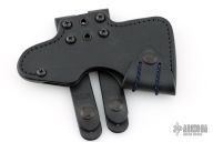 The leather Jenny Scabbard is a cool-old school way to carry your Jenny Wren Spike or Hammer Poll if Kydex isn't your thing.  It's built with a bottom eject style and includes Leather High Ride Straps (MOLLE) for mounting on PALS Webbing, the straps work great with backpacks, and also belt carry.  There is a Pull the Dot flap with shock cord to aid moving the flap out of the way to make re-sheathing easier.