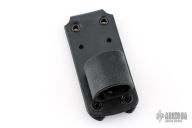 What better way to easily carry around your tomahawk or ax with fast access than with a traditional baldric ring, done RMJ style?! Simply drop your tomahawk handle first through the leather loop, and you have a nice and secure (but easy to grab) tool. Even though the traditional ways can be great, we still bring some 21st century to this system. The system is built on a leather panel that features dual snap loop straps that can be used to mount the ring to belts up to 2 inches wide, as well as mount the panel directly onto PALS webbing with the built in MOLLE straps.  The leather loop has in inside diameter of 1.5" inches, so will accommodate a wide variety of handle profiles. The saddle stitched construction means that it is super durable and will still hold together even if the binding is damaged.