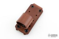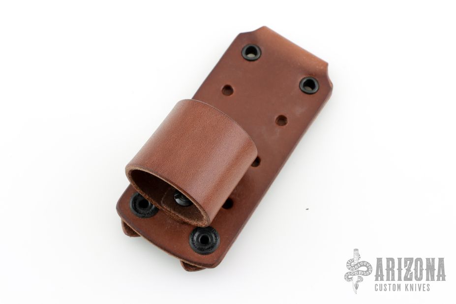 Pictured, you can see that you can use your stock kydex sheath or one of our leather edge covers.