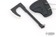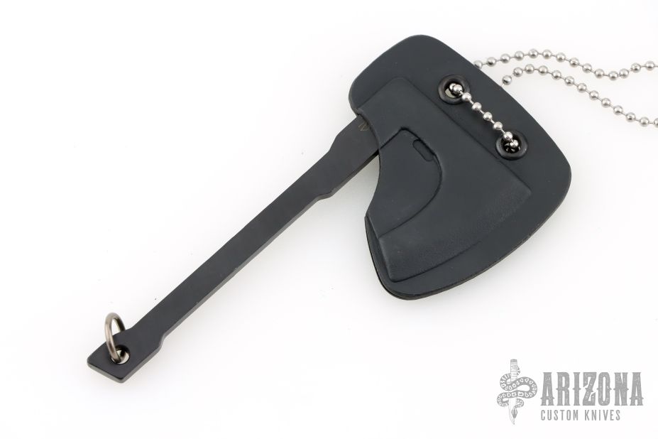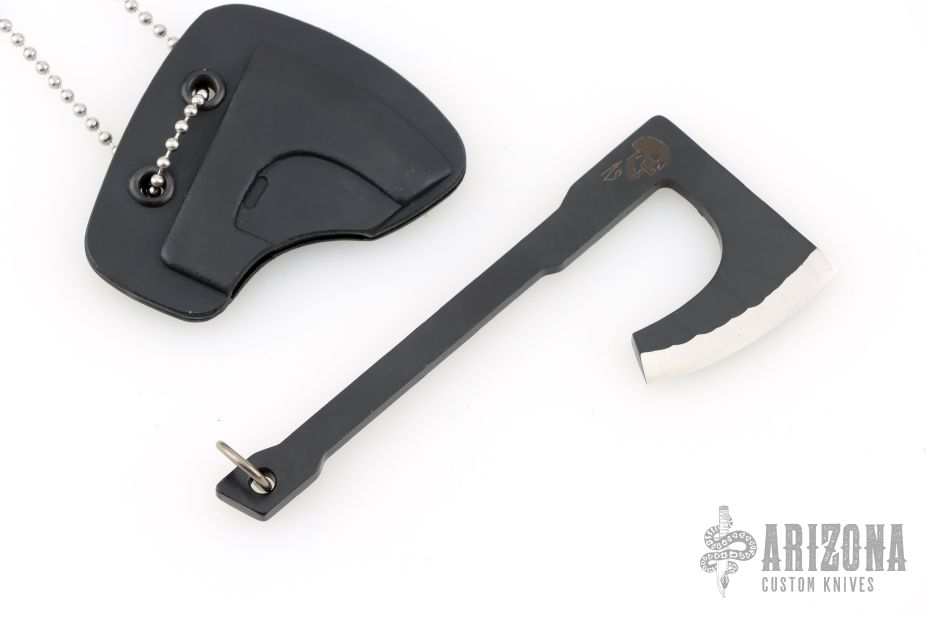 The Mortifer Mini Tomahawk is more than just a pendant, it features a live edge that can be used as a small utility knife, great for quick tasks like opening boxes or scoring materials. The Mortifer comes with a Kydex sheath and ball chain so it can be worn as a pendant.  The sheath or the ring through the the handle can be attached to your keys, or a lanyard, etc.