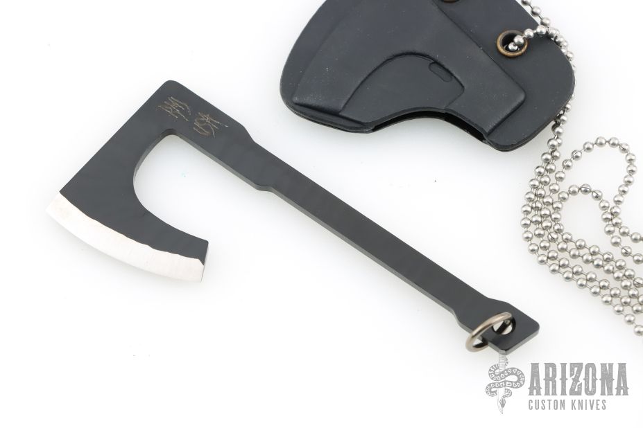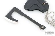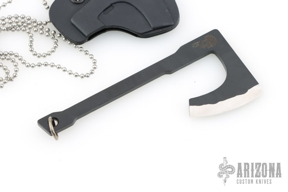 The Mortifer Mini Tomahawk is more than just a pendant, it features a live edge that can be used as a small utility knife, great for quick tasks like opening boxes or scoring materials. The Mortifer comes with a Kydex sheath and ball chain so it can be worn as a pendant.  The sheath or the ring through the the handle can be attached to your keys, or a lanyard, etc.