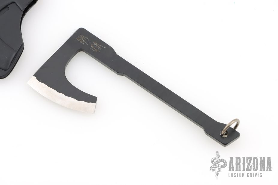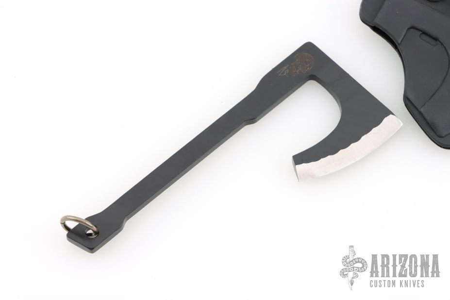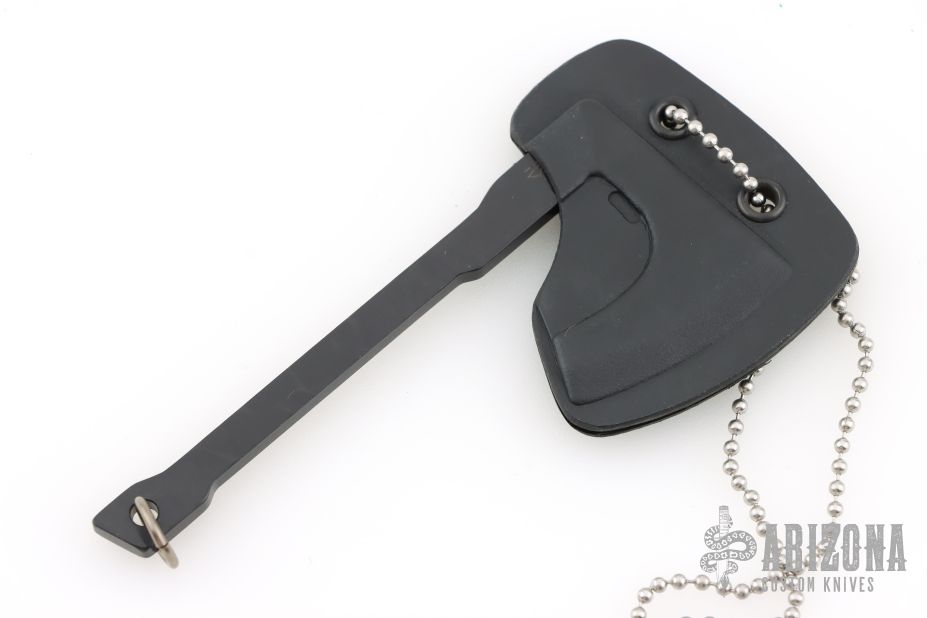 The Mortifer Mini Tomahawk is more than just a pendant, it features a live edge that can be used as a small utility knife, great for quick tasks like opening boxes or scoring materials. The Mortifer comes with a Kydex sheath and ball chain so it can be worn as a pendant.  The sheath or the ring through the the handle can be attached to your keys, or a lanyard, etc.