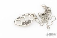 Snuckles pedants are cast from two materials, brass and sterling silver, offering two distinct looks.  Our in-house silver smith, Jade, hand finishes them with a gorgeous polished patina.  The Snuckles pendant can be rocked on a necklace up to 5mm thick.  We left the necklace part up to you so you can wear on a style that suites you.  Due to the hand finished nature, each pendant has a unique finish and look all their own.