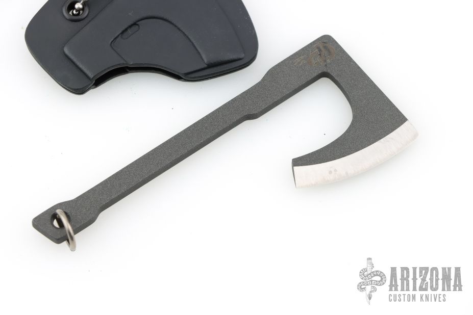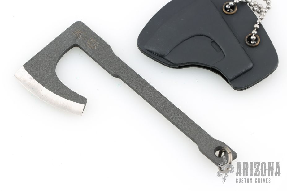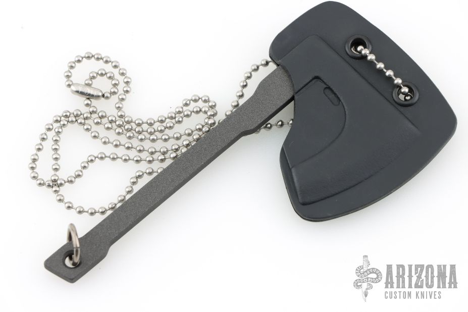 The Mortifer Mini Tomahawk is more than just a pendant, it features a live edge that can be used as a small utility knife, great for quick tasks like opening boxes or scoring materials. The Mortifer comes with a Kydex sheath and ball chain so it can be worn as a pendant. The sheath or the ring through the the handle can be attached to your keys, or a lanyard, etc.