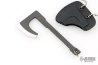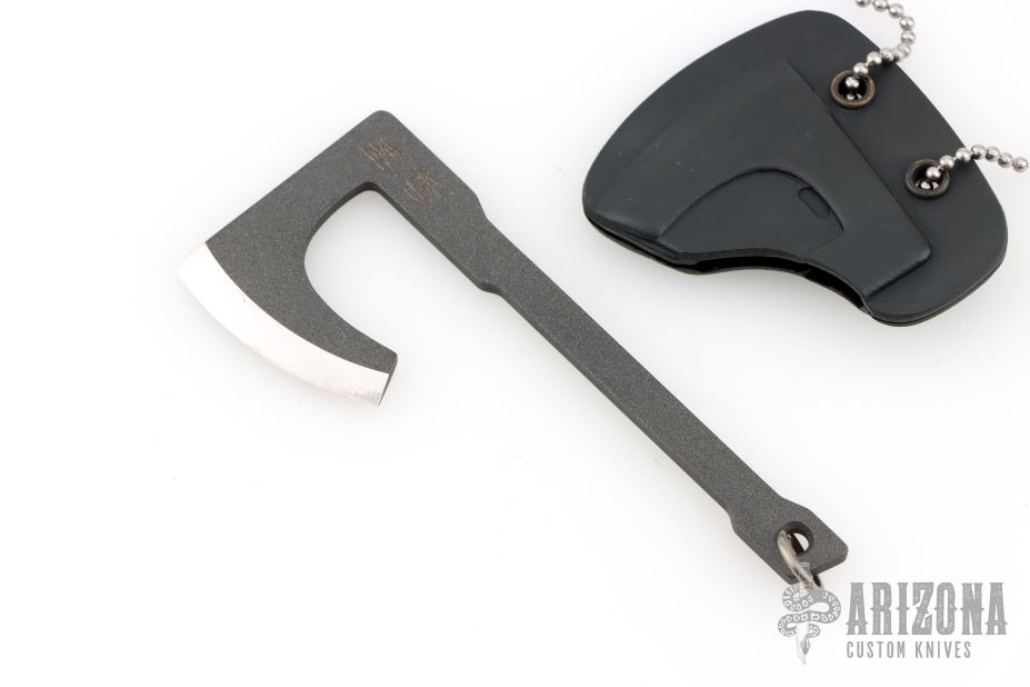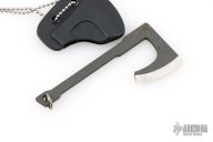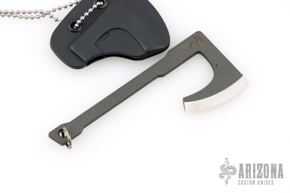 The Mortifer Mini Tomahawk is more than just a pendant, it features a live edge that can be used as a small utility knife, great for quick tasks like opening boxes or scoring materials. The Mortifer comes with a Kydex sheath and ball chain so it can be worn as a pendant.  The sheath or the ring through the the handle can be attached to your keys, or a lanyard, etc.