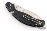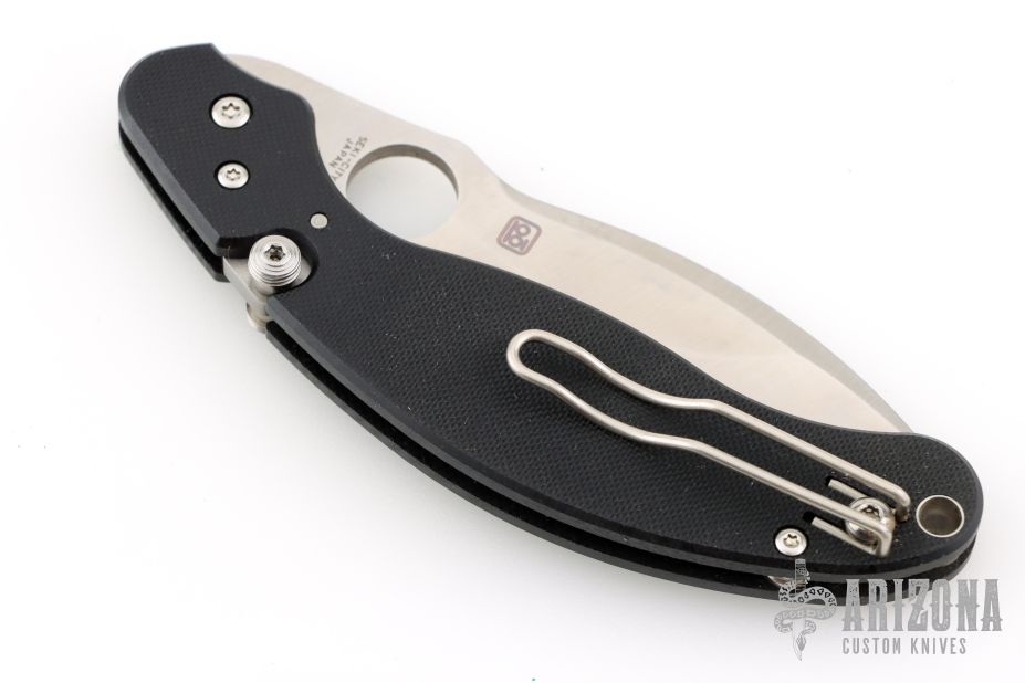 The Parata’s blade is linked to a sleek, linerless G-10 handle with Spyderco’s patented Stop Lock™ -- a high-strength, extremely user friendly lock mechanism that releases by lifting a toggle on the spine of the handle. Introduced for the first time in this knife, the Stop Lock is amazingly compact and offers smooth, ambidextrous operation. Its mechanism is housed between textured G-10 scales that are gracefully curved for a secure grip and joined by stainless steel standoffs to create a lightweight, easy-to-clean, open-backed construction style.