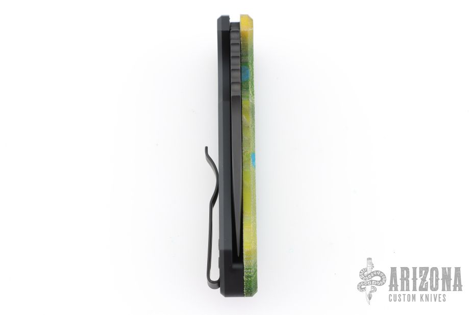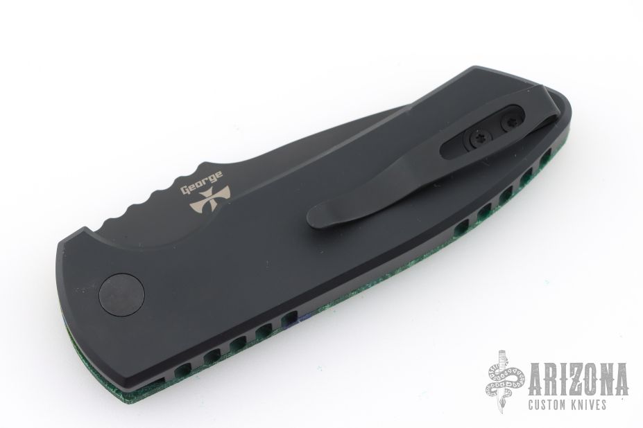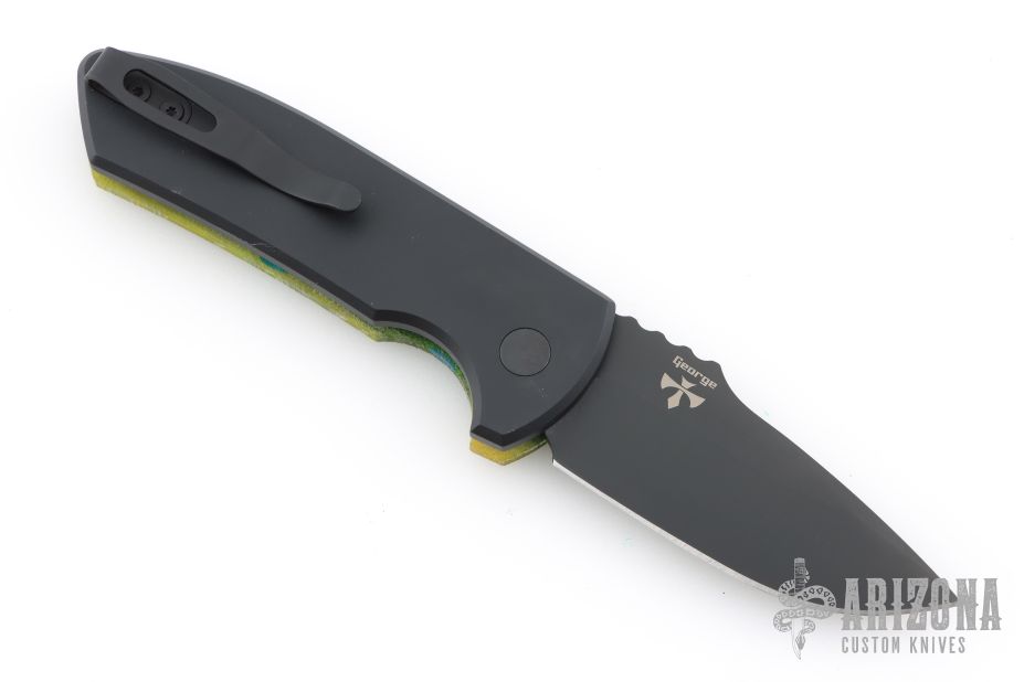 This one has Unique Micarta front and abalone inlaid push button. Comes with original box and papers. New from maker!