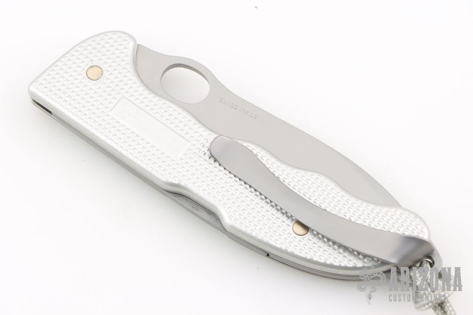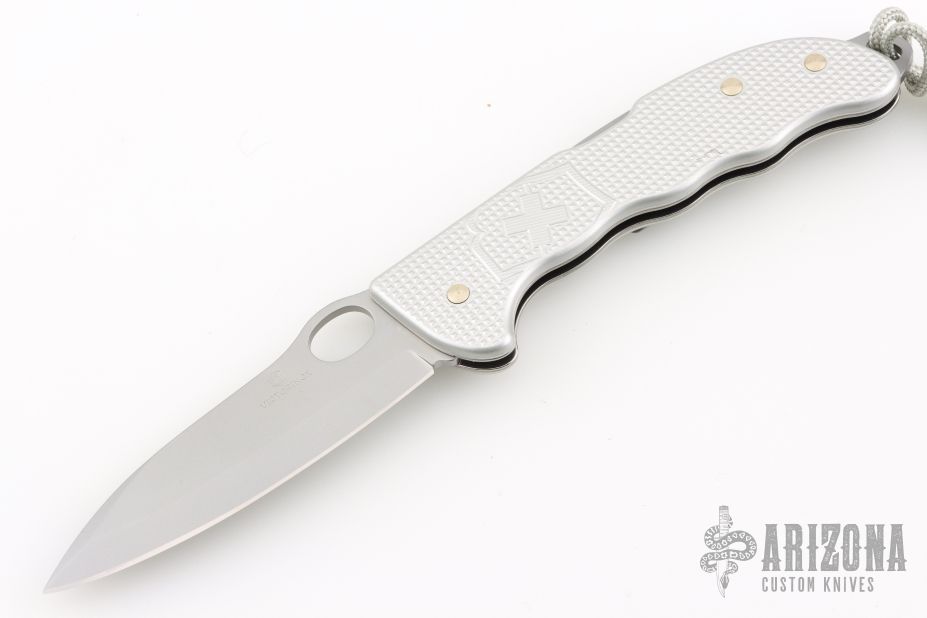 This Victorinox Pro Hunter Alox Limited Edition lockback features a bead blast finished drop point blade with notched thumb rest. The handle has stainless liners, rockerbar, textured covers, and extended pommel lanyard bail.   Excellent condition.