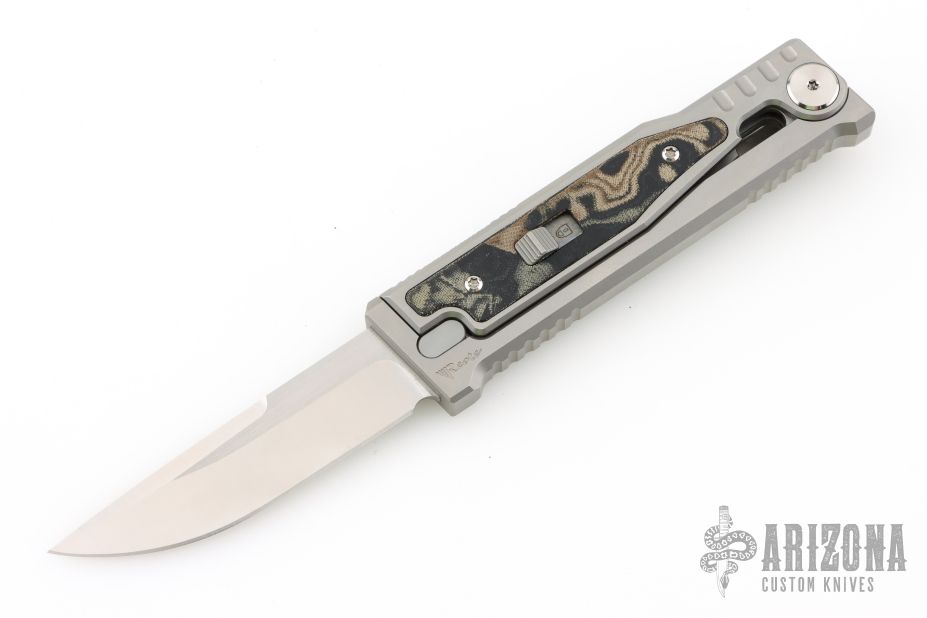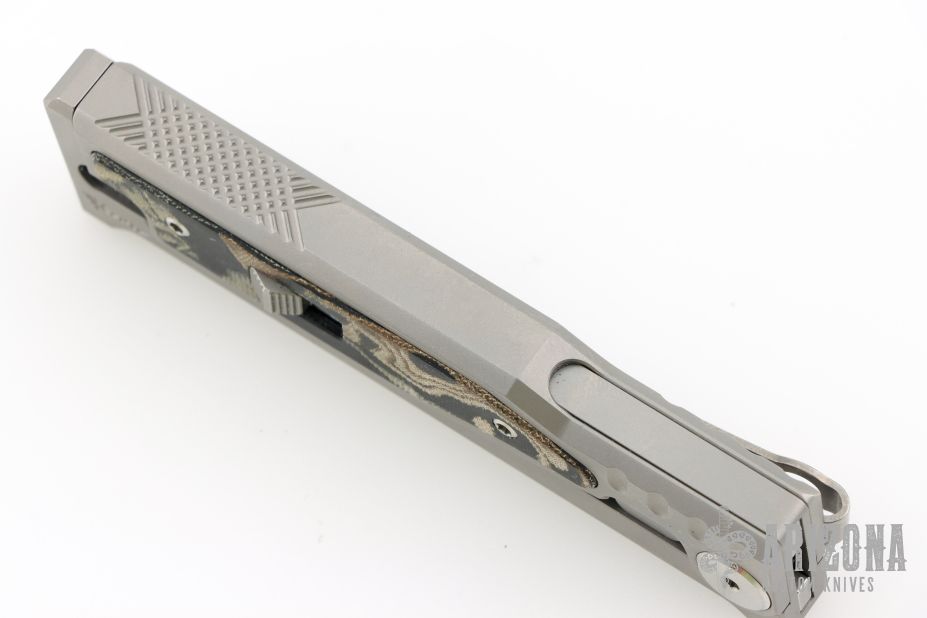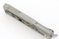 The smaller EXO-M has all the benefits of the full-size EXO from Reate Knives, but has even more to offer! For one, the smaller size makes this an even more convenient pocket knife. Plus, with a secure titanium pocket clip and lock, Reate ups their game with this gravity OTF Knife. A safety slide lock on the face of the handle is ideal for user safety, and the new pocket clip makes EDC carrying as easy as can be. By pinching the milled handle scales and dropping the frame at an angle, you can easily slide the blade in and out with nothing but gravity. If you haven't guessed it already, this means hours of quality fidgeting! That aside, the build and materials of this knife are Reate standard: simply excellent and endlessly functional. Like the EXO, the EXO-M boasts flawless fit and finish, smooth action, and a razor edge to meet your cutting needs. It includes a leather slip for safe carrying as well as the titanium clip.