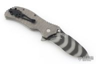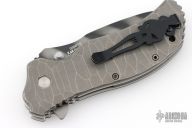 This 0350TS liner lock flipper is a Ken Onion design executed by Zero Tolerance and features a recurved spear-point blade with a tiger stripe finish, stainless steel liners and carved titanium scales. It also features the Speed-safe assisted opening system. #45759. Has a tip up black skull clip. Has a couple light scuffs and scratches, great condition otherwise.
