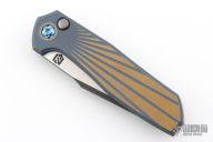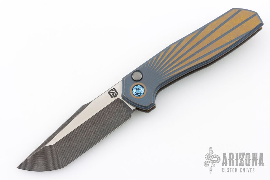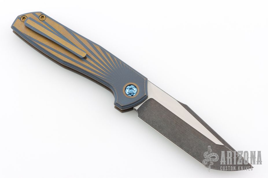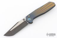 This Ragnarok Mach1 by Nick Chuprin features an acid washed harpoon milled blade and flipper.  The handle has an anodized and Solar Flare milled titanium frame, titanium tip up clip with hidden screws, anodized titanium backspacer.  Nice action, lockup and blade seating. Comes with a zippered case and COA. S/N 9. Excellent condition.